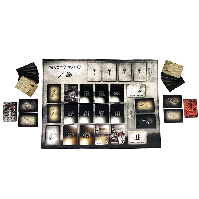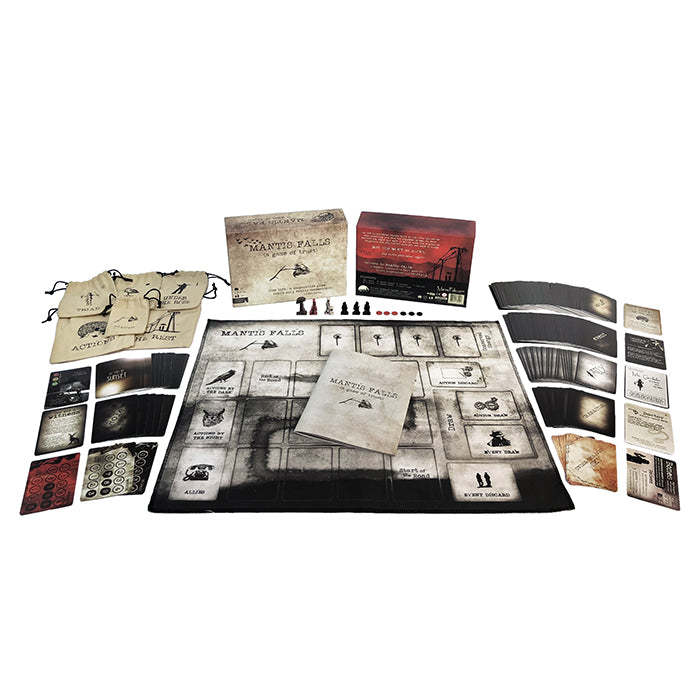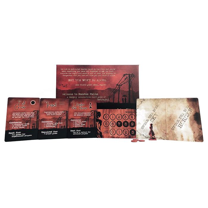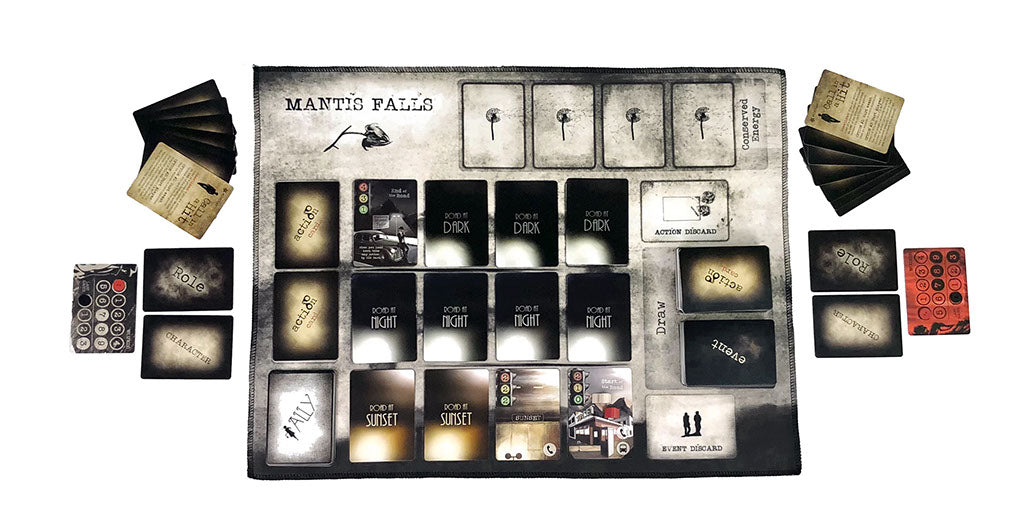 Mantis Falls is a "sometimes cooperative" game. Each game may be entirely witnesses, in which case players only win if they all survive together - or there could secretly be an assassin hidden among them, subtly manipulating the situation and waiting for the right moment to strike.